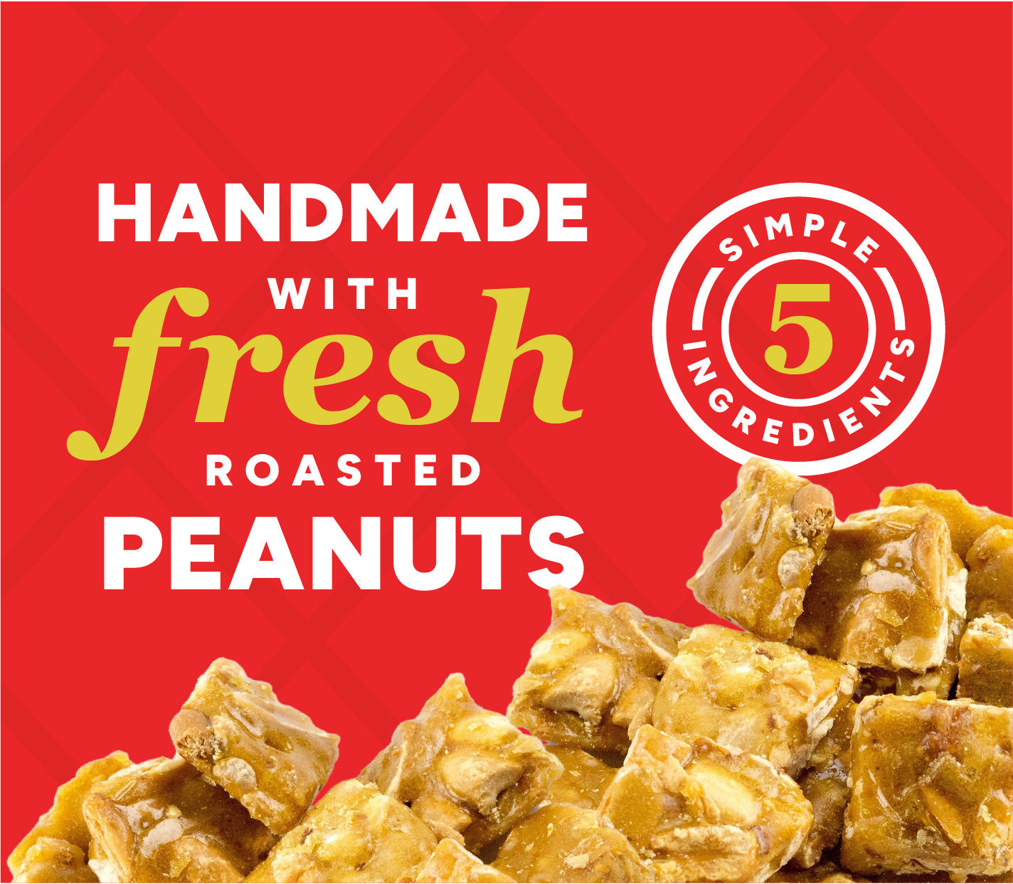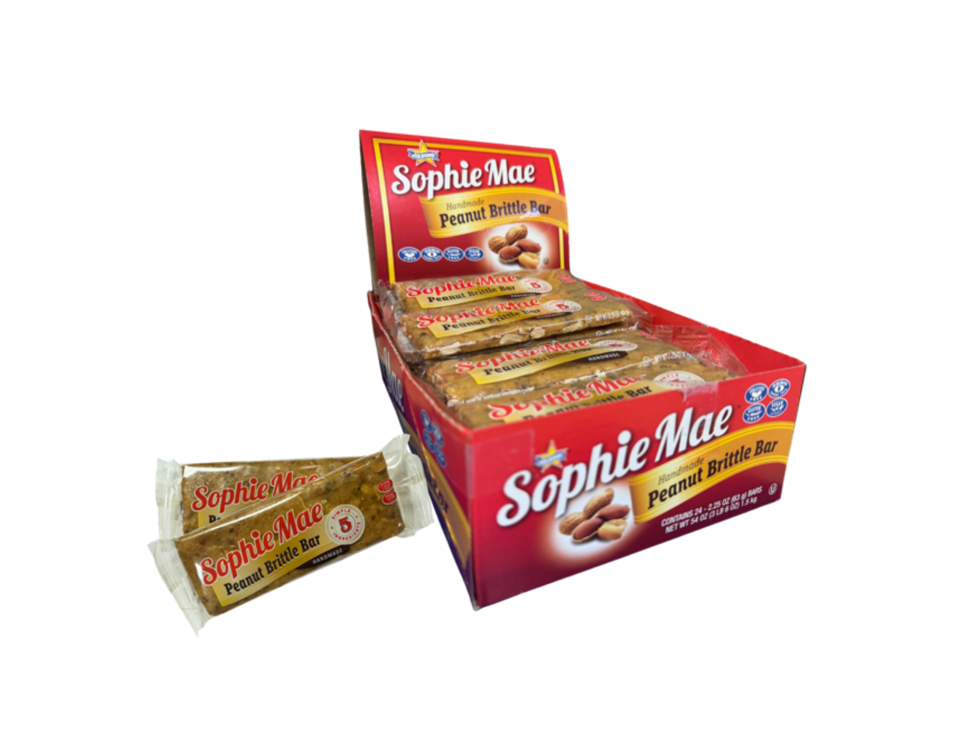 A little salty and a little sweet, Sophie Mae® Peanut Brittle is handmade from scratch with five simple ingredients. This snack sized bar is savory and satisfying! 24 bars in a display box.